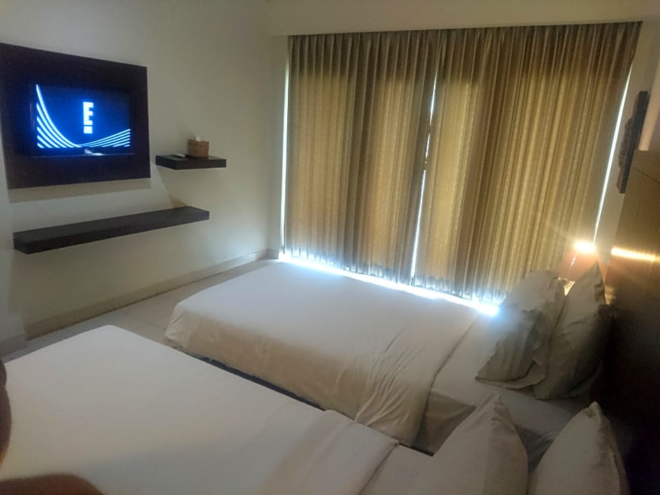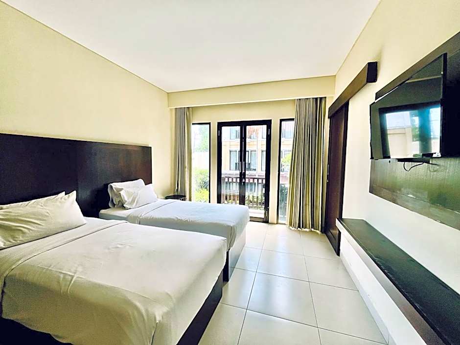 Deluxe Double Pool Access is 226 square feet and includes a king-size bed 150-183 width plus desk, satellite tv , cable tv, and safe.